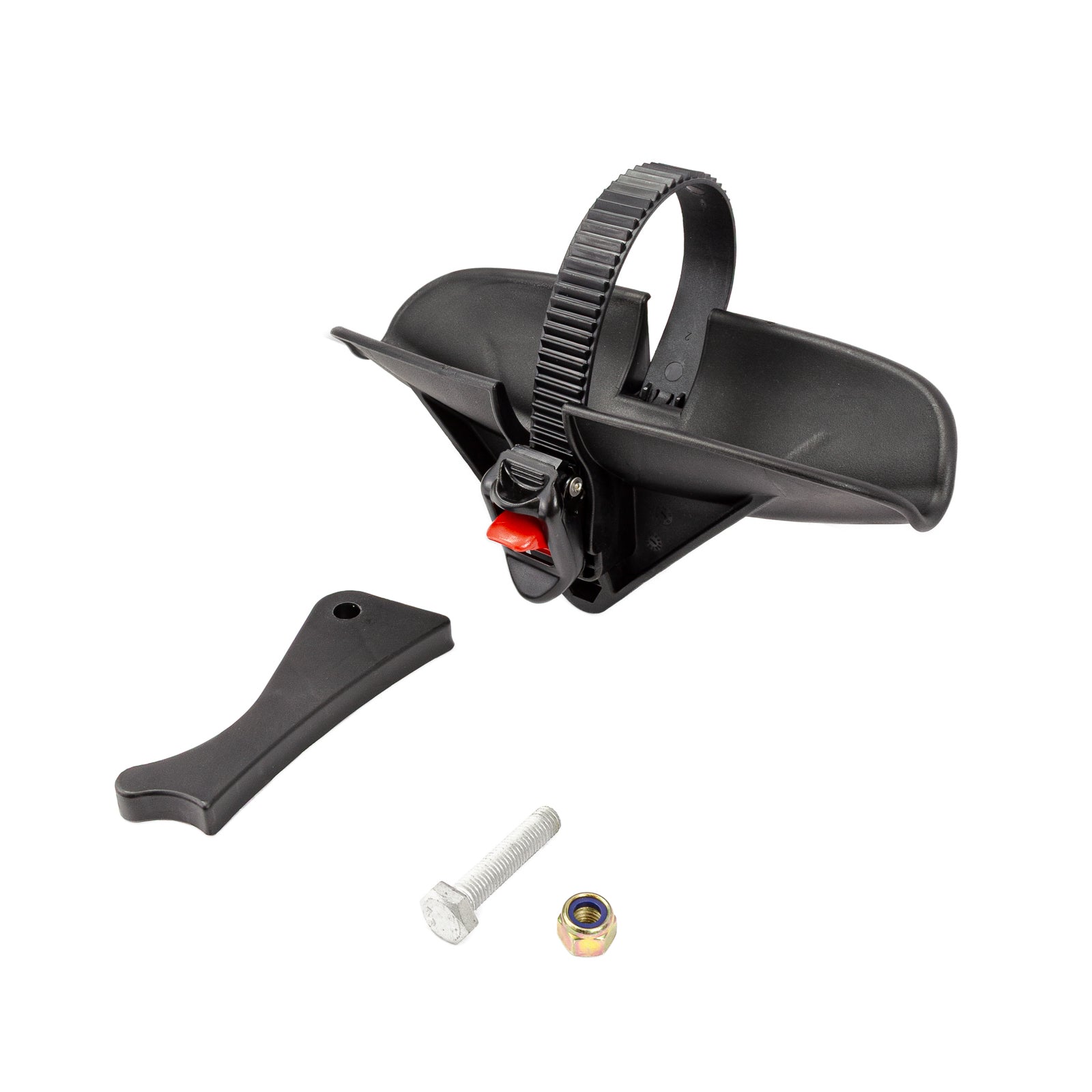 Replacement 8890198 rear wheel tray for Yakima HoldUp hitch-mounted bike racks that were produced before 2013 and are silver in color. Includes (1) rear wheel tray w/ mounting bolt.