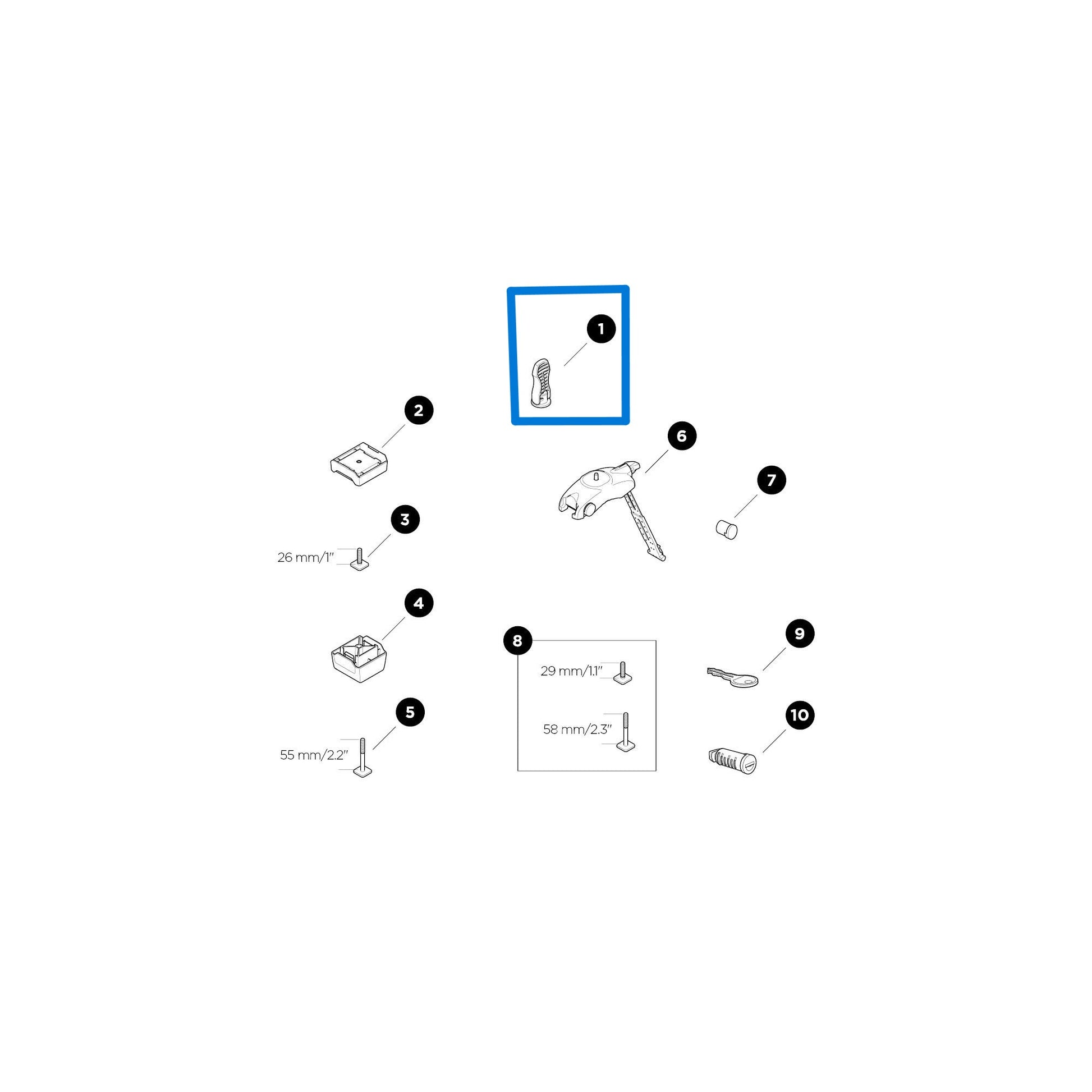 Item (1) from the included Thule SnowPack parts schematic